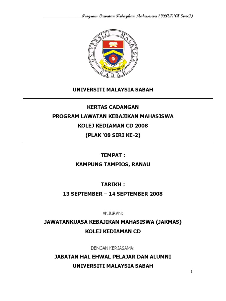 Bakti siswa qkk2101 kumpulan 6 kursus kokurikulum berkredit semester pertama sesi 20182019 pusat kokurikulum dan pembangunan pelajar universiti putra malaysia dengan kerjasama. Tujuan kertas kerja ini dikemukakan dengan tujuan. Perasmian Penutup 1 Nama Penuh beserta jawatan 2 Nama Penuh beserta jawatan 3 Nama Penuh beserta jawatan 120 PENGLIBATAN AHLI-AHLI PROGRAM Jumlah peserta 380 orang Cth.